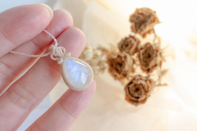 背守りとは…マクラメジュエリーにおいては、背後からの邪気を防ぐ為に、調節用の首紐エンド部分に施される装飾