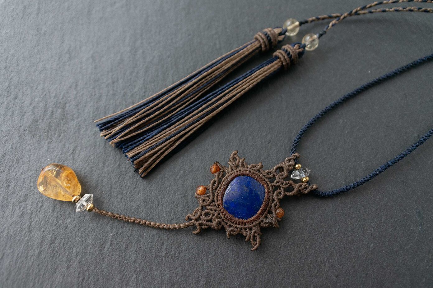 ラピスラズリ・シトリン・ハーキマーダイヤモンド【紺碧の夜空と月の戯れ】ネックレス