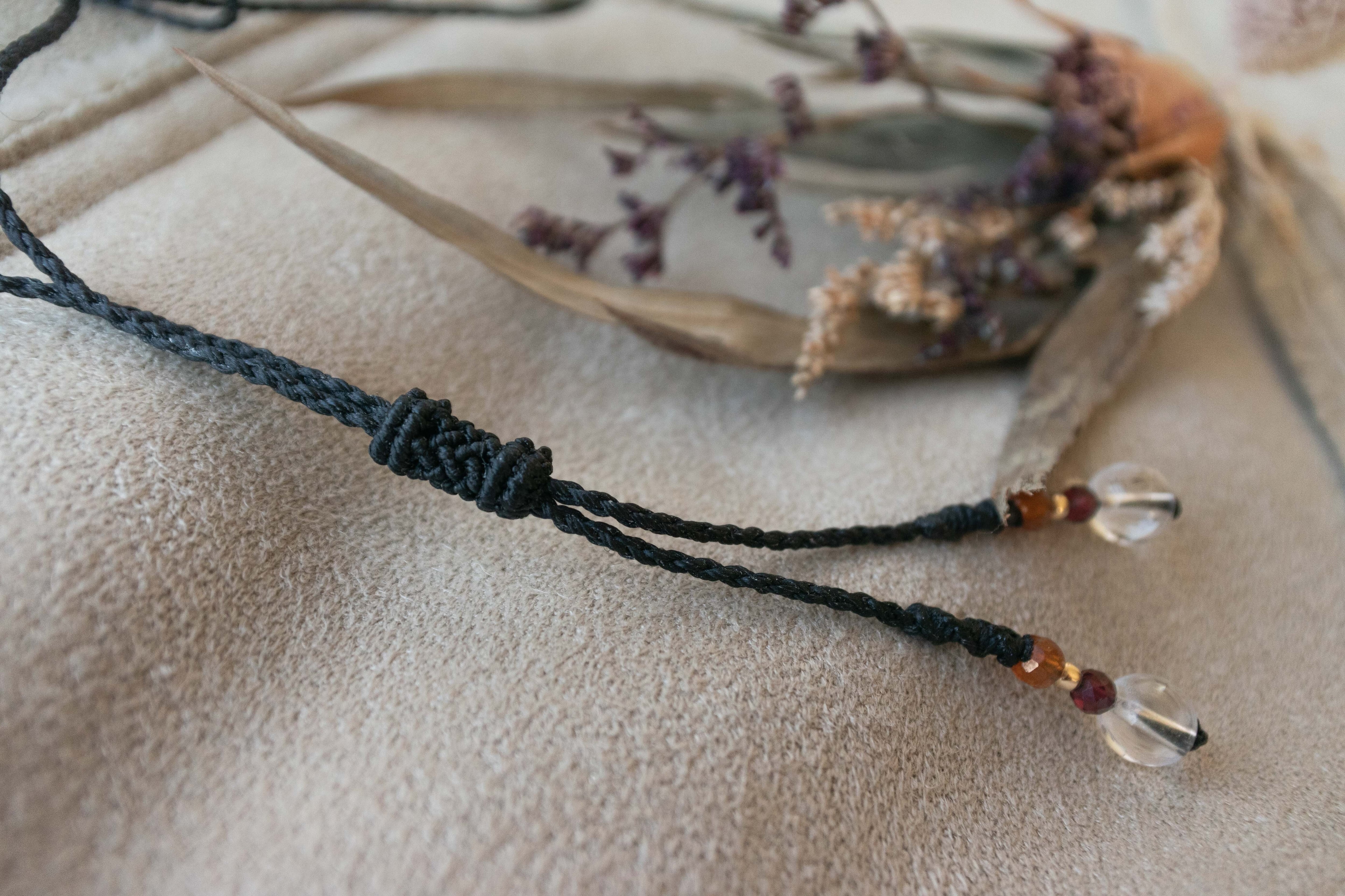 背守りとは…マクラメジュエリーにおいては、背後からの邪気を防ぐ為に、調節用の首紐エンド部分に施される装飾