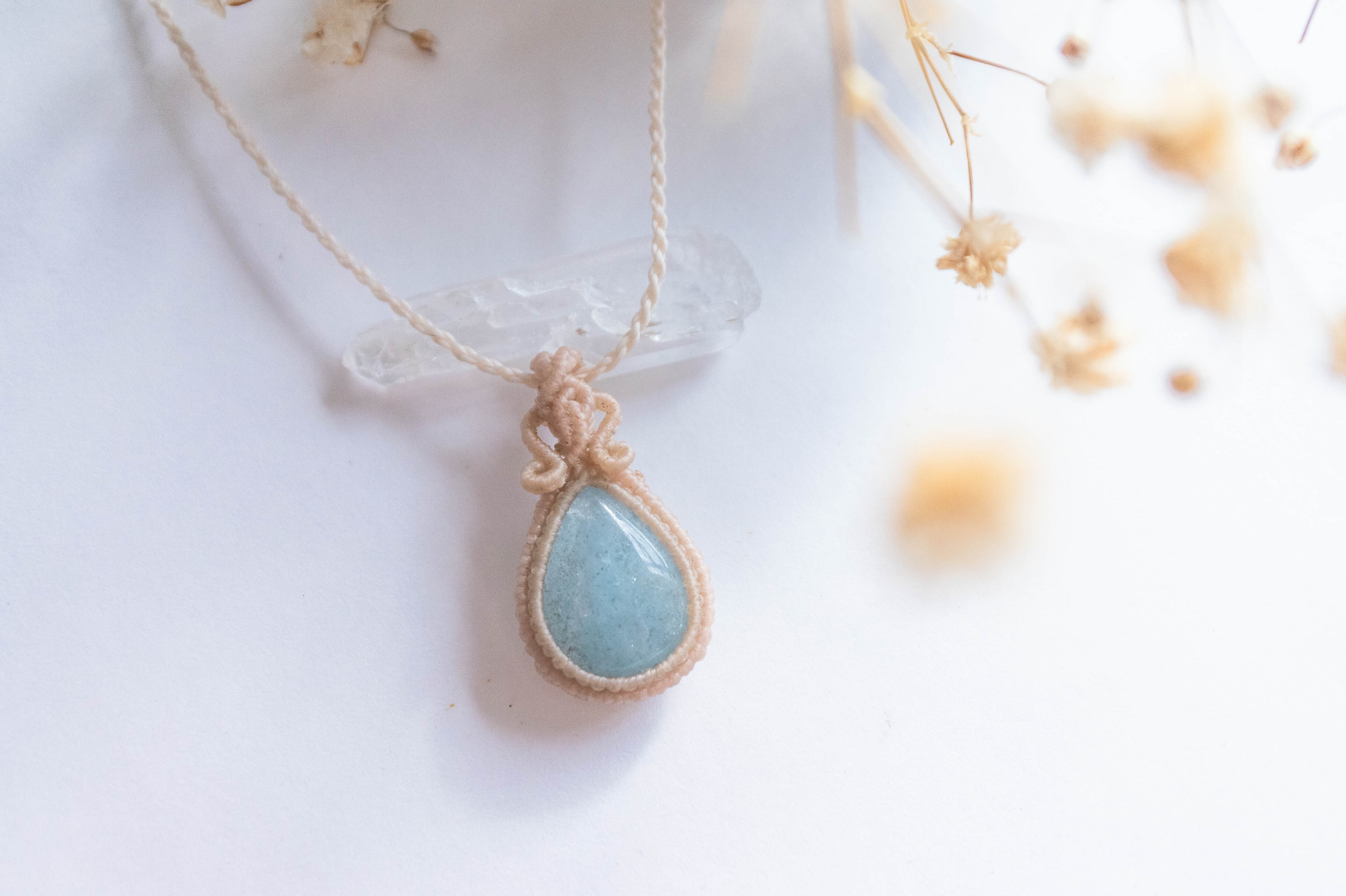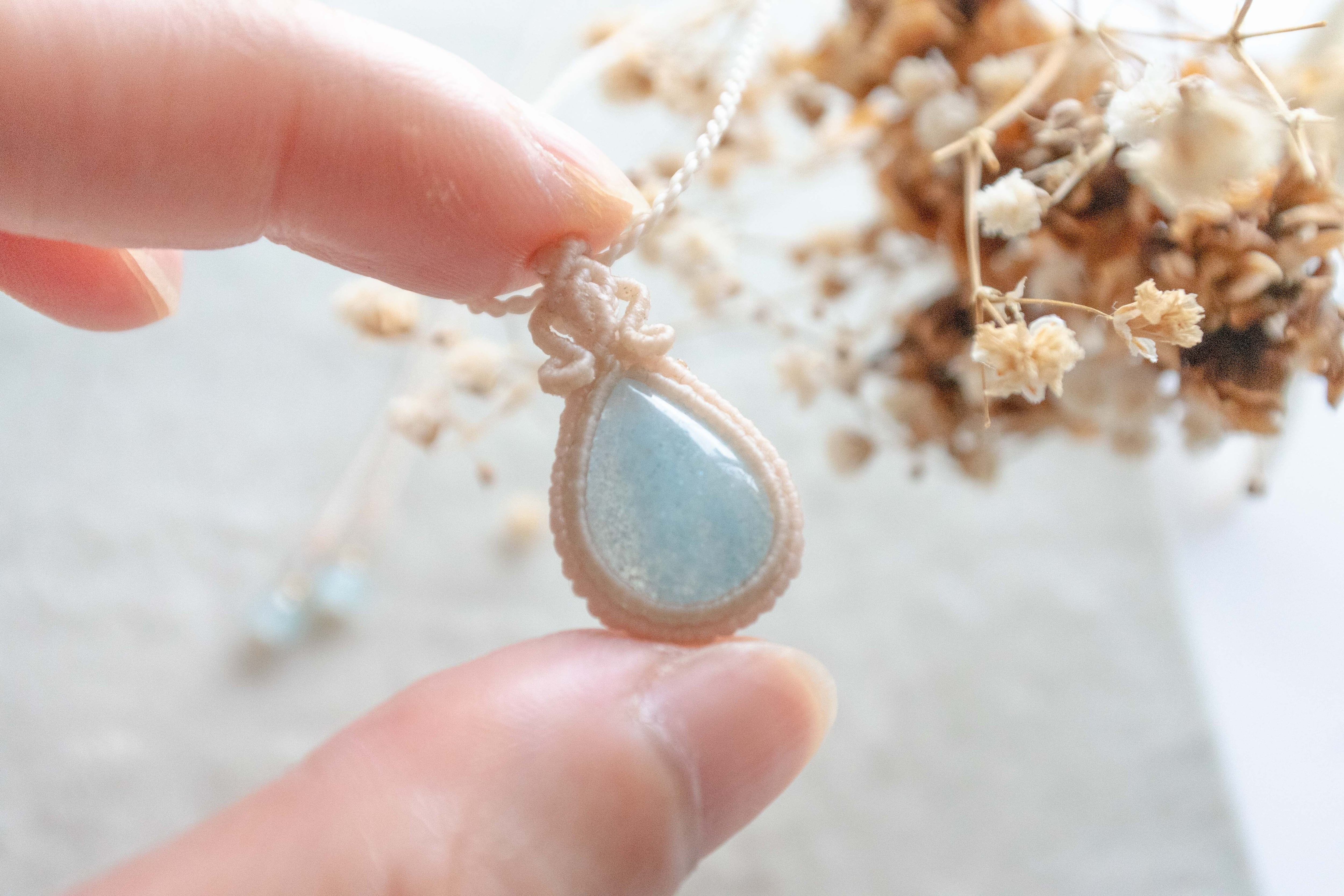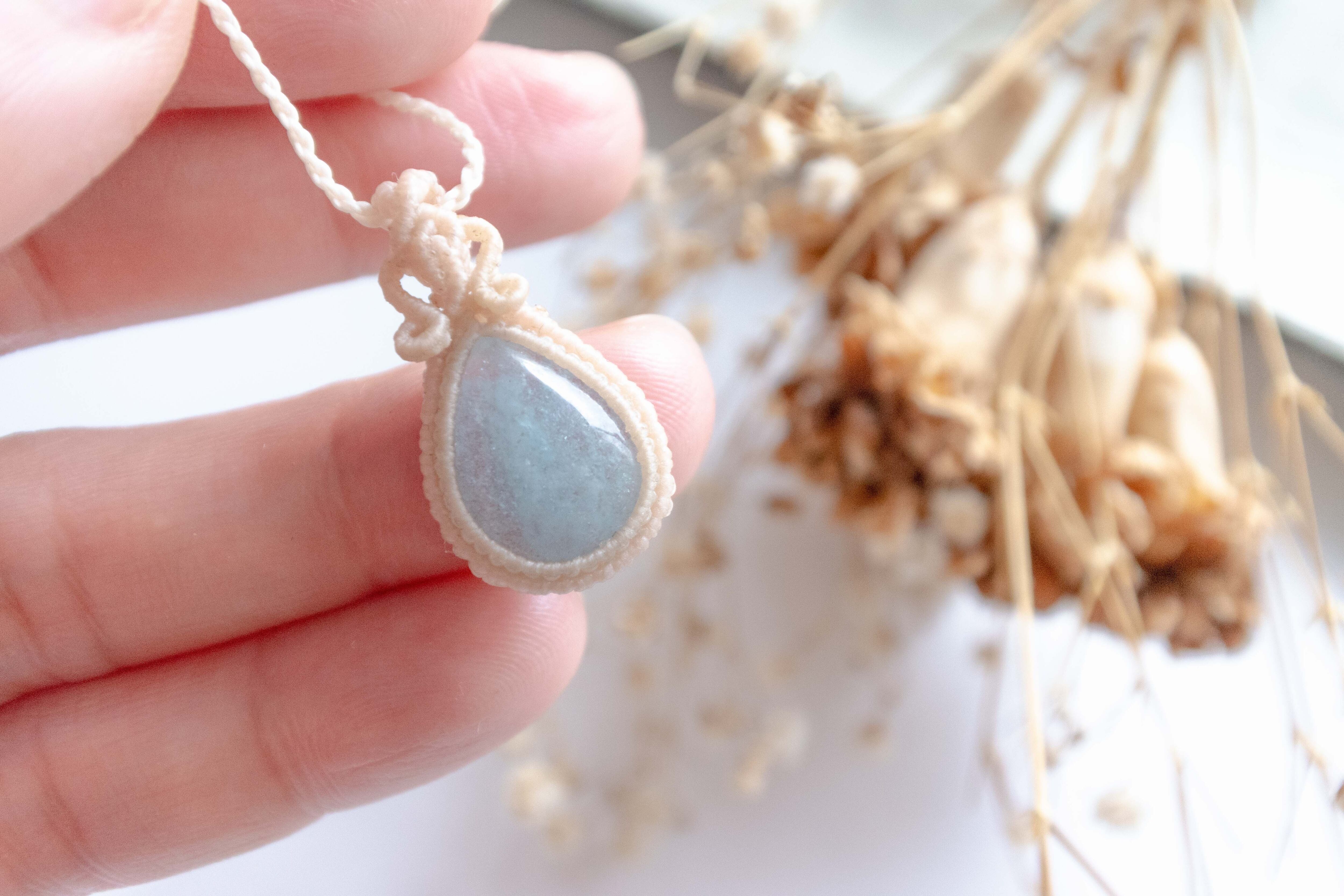 私だけのお守り・アクアマリンのシンプルマクラメペンダント