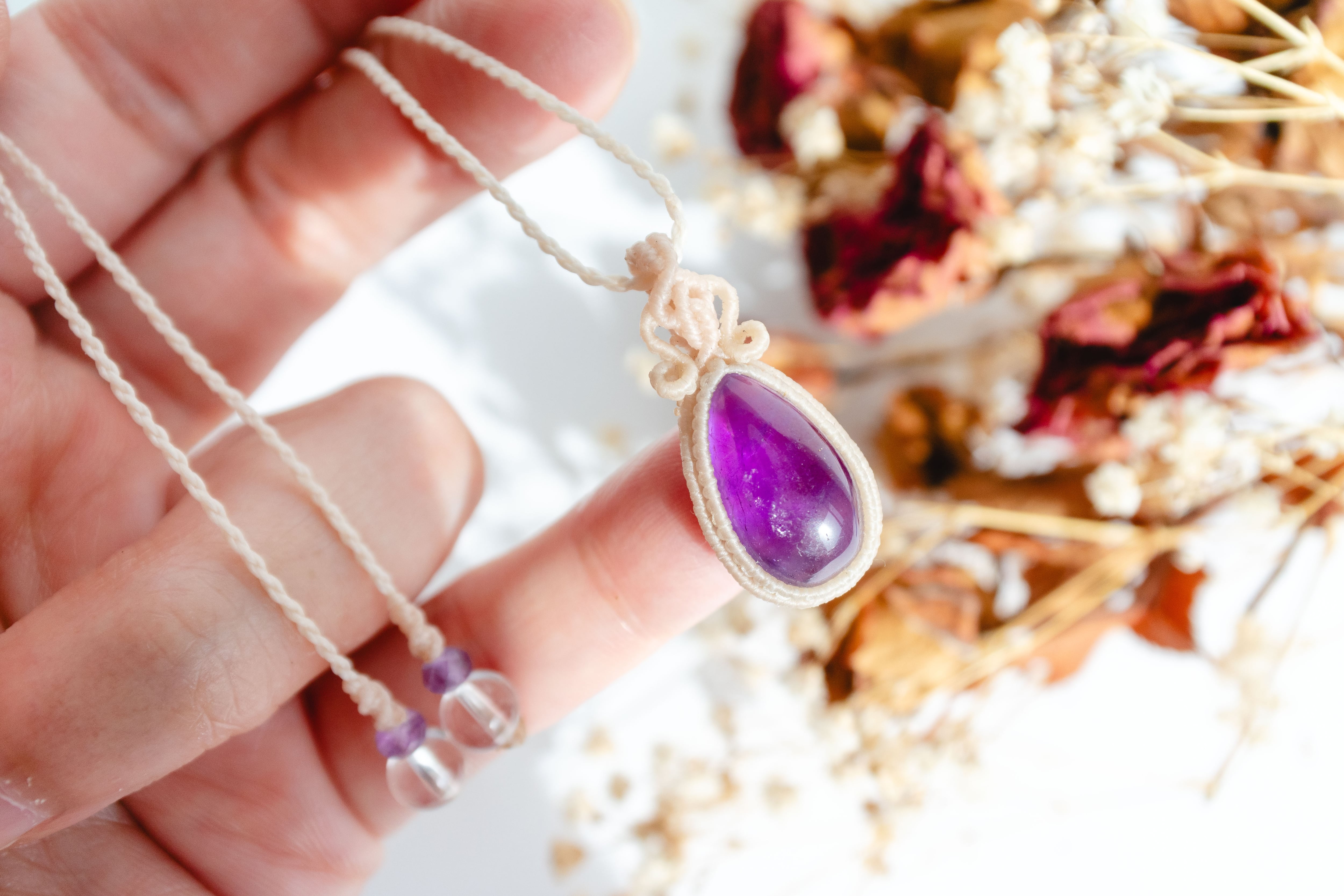私だけのお守り・アメジストのシンプルマクラメペンダント