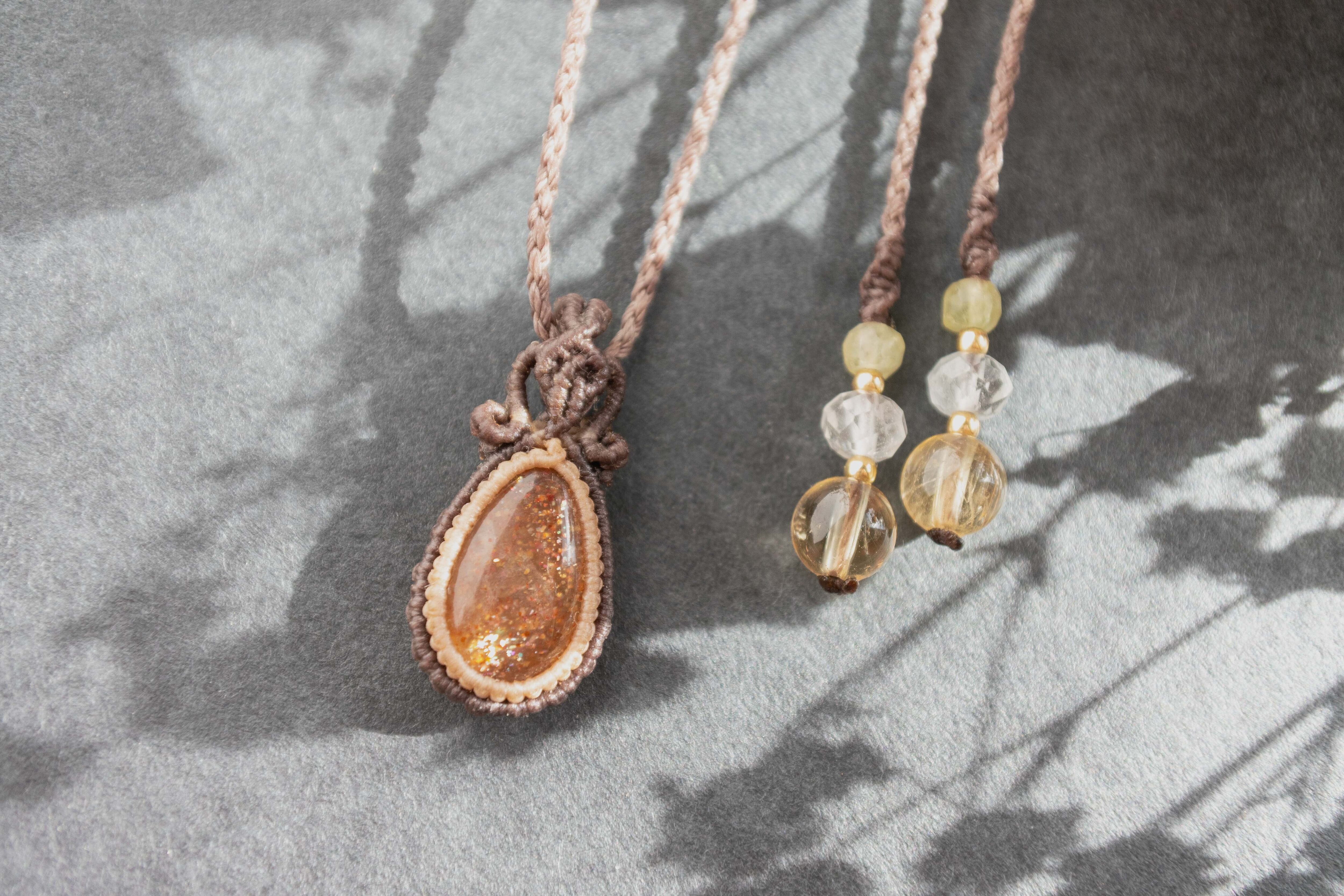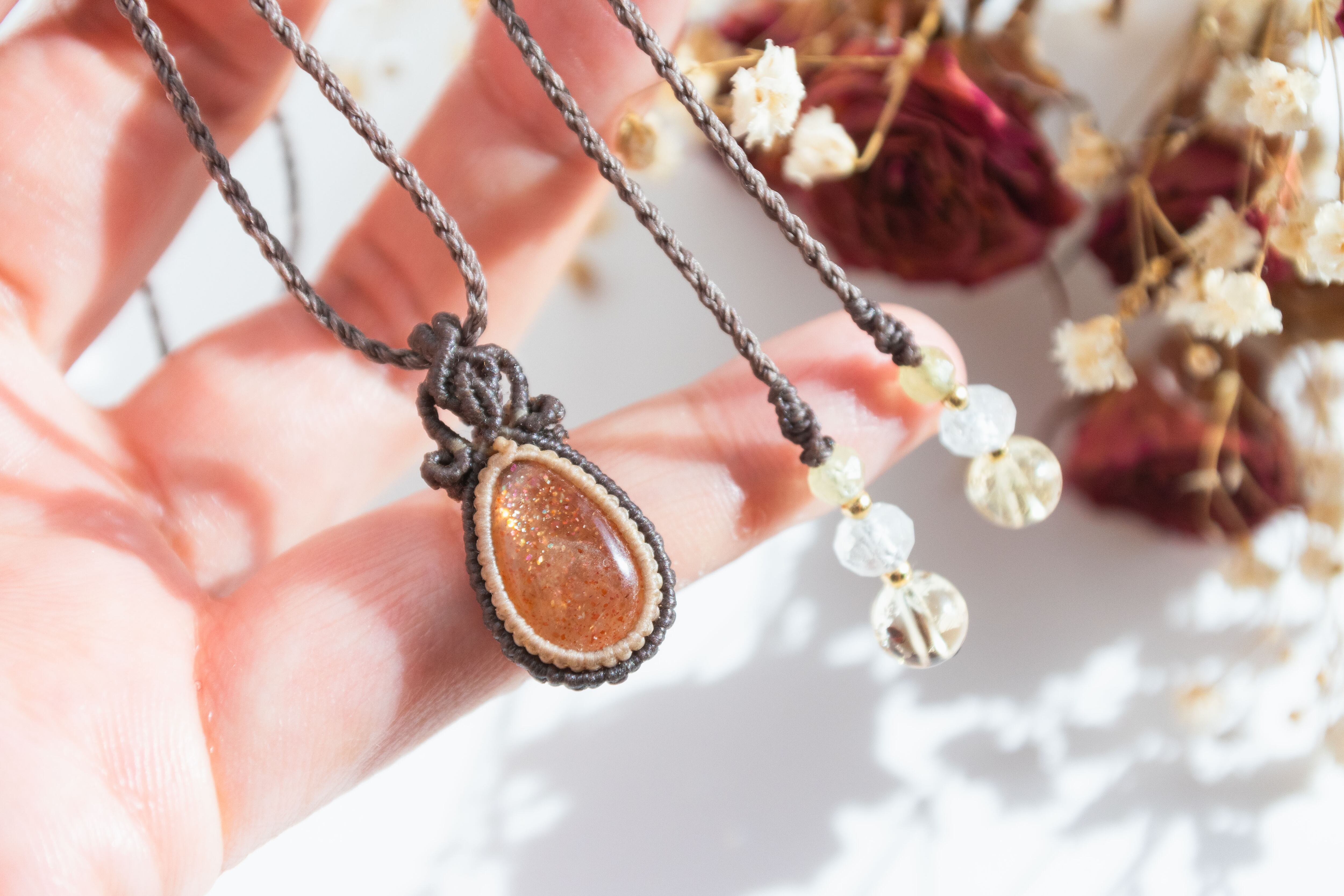 私だけのお守り・サンストーンのシンプルバイカラーマクラメペンダント