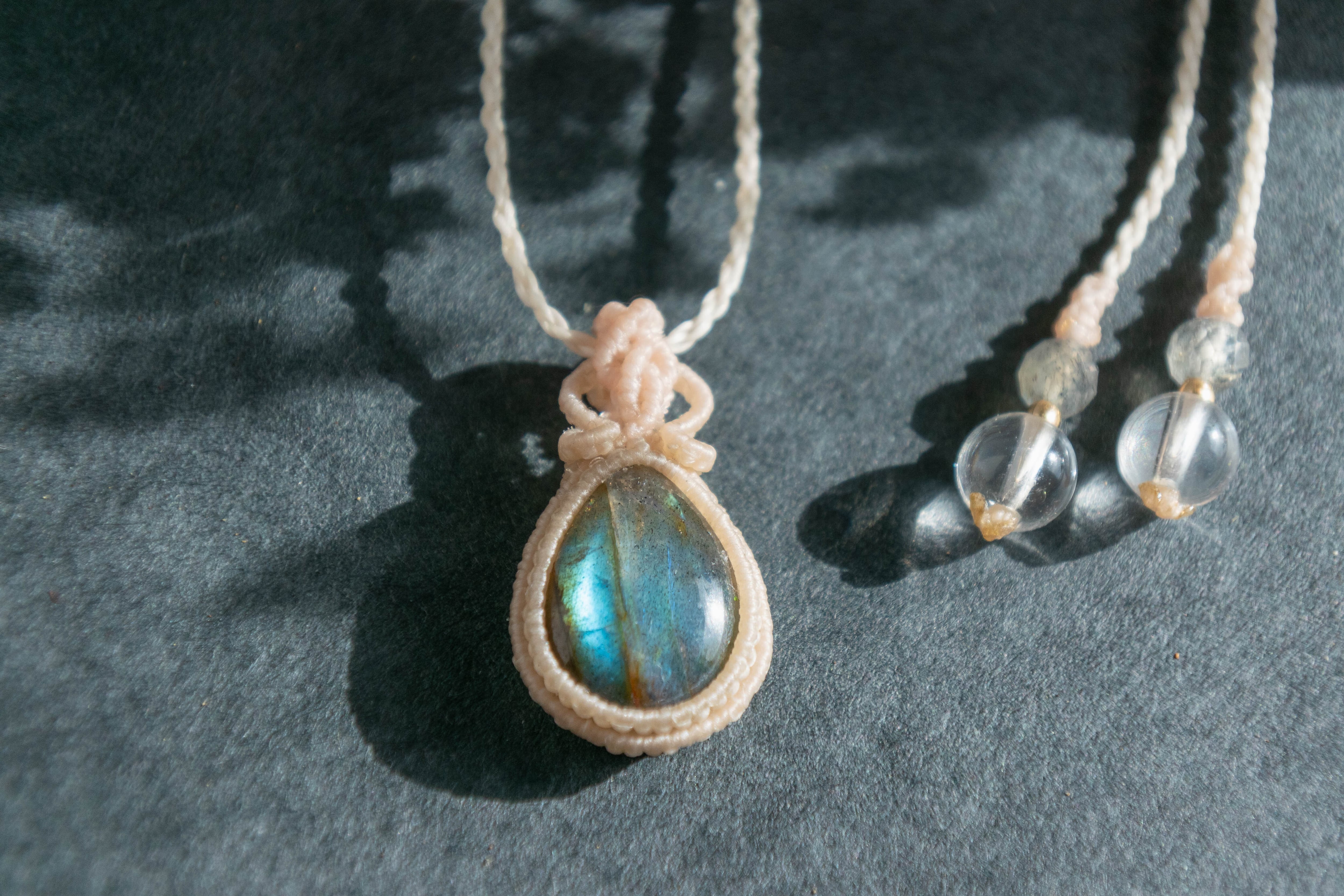 私だけのお守り・ラブラドライトのシンプルマクラメペンダント